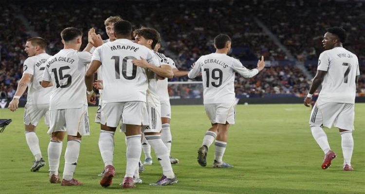 El Madrid golea 4-1 al Levante con doblete de Mbappé y el primer gol de Mastantuono Cinthya Paez septiembre 24, 2025 DEPORTES Kylian Mbappé firmó un doblete en apenas tres minutos y el argentino Franco Mastantuono marcó su primer gol con el Real Madrid en la victoria 4-1 como visitante ante el Levante, que mantiene el inicio perfecto del club blanco en La Liga con seis triunfos al hilo. Vinicius Júnior abrió el marcador a los 28 minutos con un disparo cruzado, rompiendo una racha de tres partidos sin anotar. Mastantuono, de 18 años y fichado en verano desde River Plate, amplió la cuenta a los 38 con un remate al ángulo superior. “Hoy llegó por fin, lo esperaba… es una alegría muy grande”, celebró el joven delantero, citó AP. Levante descontó a los 54 con un cabezazo de Etta Eyong, pero Mbappé sentenció con dos goles consecutivos: primero un penalti al estilo Panenka a los 64 y luego una definición tras eludir al arquero a los 66. El francés suma nueve tantos en siete partidos de liga y ya lleva dos con su selección en el mismo lapso. El Madrid, que también ganó en su debut de Champions ante el Marsella, lidera La Liga con cinco puntos de ventaja sobre el Barcelona, que visitará el jueves al recién ascendido Oviedo. Su próximo reto será el derbi madrileño frente al Atlético.