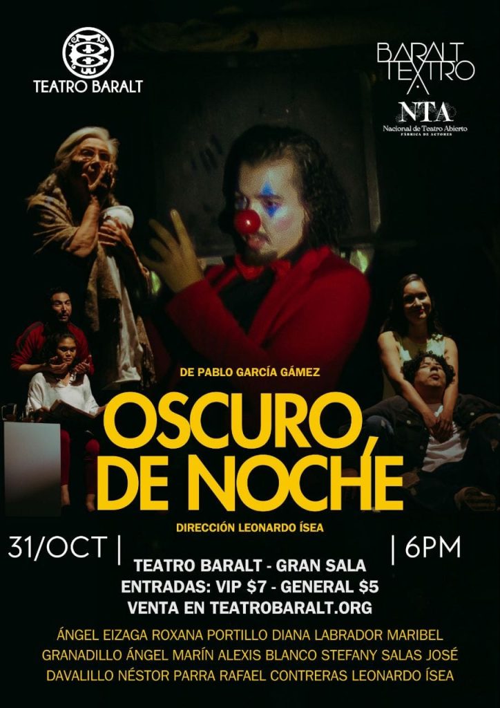 La compañía residente Baralt Teatro presenta la segunda función de Oscuro de noche Cinthya Paez octubre 29, 2025 CIUDAD, ESPECTÁCULOS, FARANDULA La compañía residente Baralt Teatro presenta la segunda función de Oscuro de noche, una obra original del dramaturgo venezolano Pablo García Gámez. El 31 de octubre en nuestra Gran Sala. La pluma de García Gámez retrata de forma poética la Caracas de principios de los 2000, donde una familia común y corriente será marcada por la tragedia. Con personajes que son sacados de la vida misma y que se ven envueltos en el terror y la oscuridad, que acecha en el corazón de nuestras ciudades.Dirigida por Leonardo Isea, con las actuaciones de: Néstor Parra, Roxana Portillo, Diana Labrador, Maribel Granadillo, Ángel Marín, Alexis Blanco, Stefany Salas, José Luis Davalillo, Ángel Eizaga y Rafael Contreras. Lugar: Teatro Baralt, gran sala. Fecha y hora: 31 de octubre, 6:00 pm. Precio de la entrada: 5$ Entradas a la venta en: www.teatrobaralt.org